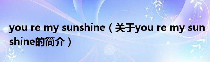 本文關于you re my sunshine的簡介就講解完畢,希望對大家有所幫助。