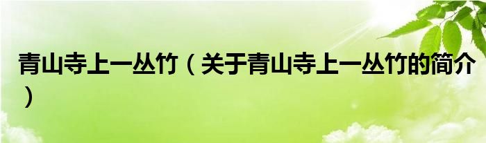 大家好,青山寺上一叢竹,關于青山寺上一叢竹的簡介很多人還不知道,現在讓我們一起來看看吧!
