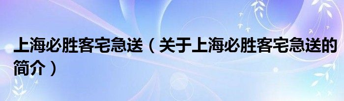 大家好,上海必勝客宅急送,關于上海必勝客宅急送的簡介很多人還不知道,現在讓我們一起來看看吧!