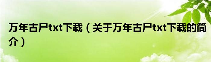 本文關(guān)于萬年古尸txt下載的簡介就講解完畢,希望對大家有所幫助。