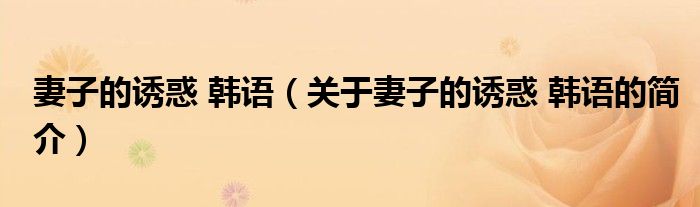 本文關(guān)于妻子的誘惑 韓語的簡介就講解完畢,希望對大家有所幫助。