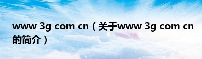 本文關(guān)于www 3g com cn的簡介就講解完畢,希望對大家有所幫助。