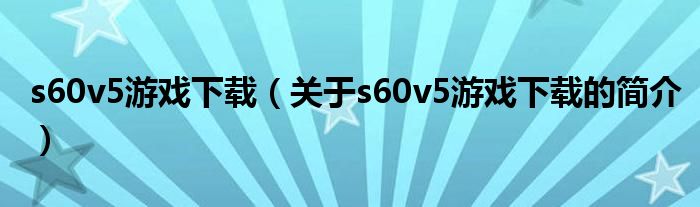 大家好,s60v5游戲下載,關于s60v5游戲下載的簡介很多人還不知道,現在讓我們一起來看看吧!
