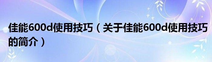 本文關于佳能600d使用技巧的簡介就講解完畢,希望對大家有所幫助。