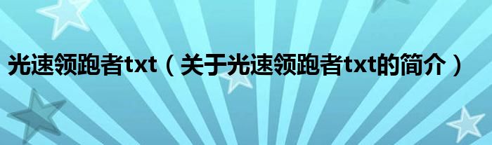 大家好,光速領(lǐng)跑者txt,關(guān)于光速領(lǐng)跑者txt的簡介很多人還不知道,現(xiàn)在讓我們一起來看看吧!