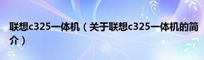 大家好,聯想c325一體機,關于聯想c325一體機的簡介很多人還不知道,現在讓我們一起來看看吧!