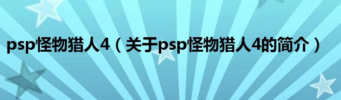 大家好,psp怪物獵人4,關于psp怪物獵人4的簡介很多人還不知道,現在讓我們一起來看看吧!