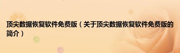 本文關于頂尖數據恢復軟件免費版的簡介就講解完畢,希望對大家有所幫助。