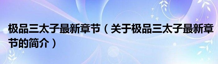 本文關于極品三太子最新章節的簡介就講解完畢,希望對大家有所幫助。