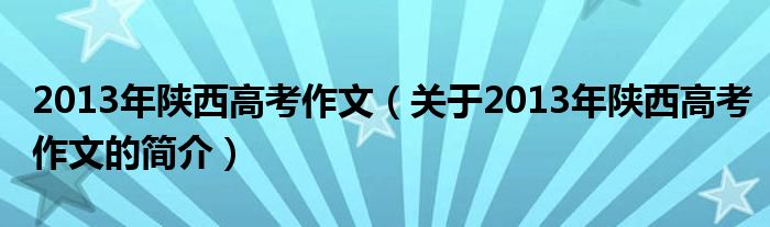 本文關于2013年陜西高考作文的簡介就講解完畢,希望對大家有所幫助。