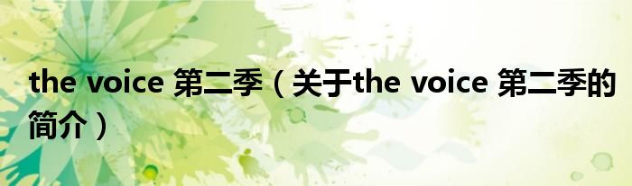 大家好,the voice 第二季,關(guān)于the voice 第二季的簡介很多人還不知道,現(xiàn)在讓我們一起來看看吧!