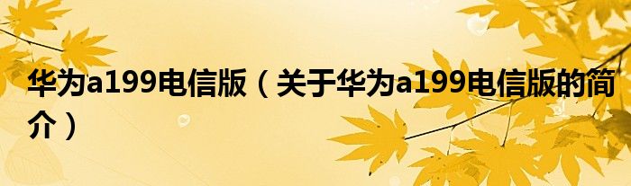 本文關于華為a199電信版的簡介就講解完畢,希望對大家有所幫助。