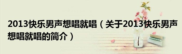 本文關于2013快樂男聲想唱就唱的簡介就講解完畢,希望對大家有所幫助。