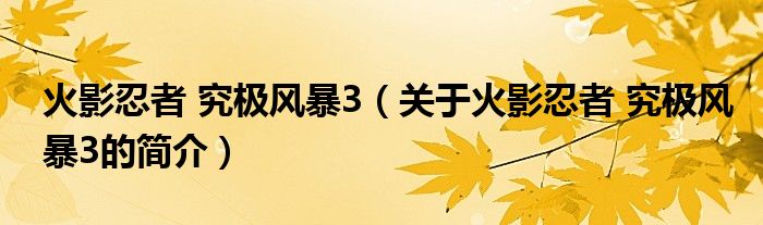 本文關(guān)于火影忍者 究極風(fēng)暴3的簡(jiǎn)介就講解完畢,希望對(duì)大家有所幫助。