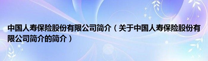 本文關(guān)于中國人壽保險股份有限公司簡介的簡介就講解完畢,希望對大家有所幫助。