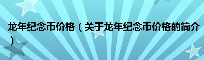 本文關(guān)于龍年紀(jì)念幣價(jià)格的簡(jiǎn)介就講解完畢,希望對(duì)大家有所幫助。