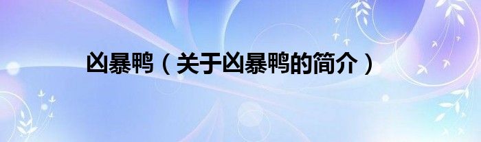 大家好,兇暴鴨,關于兇暴鴨的簡介很多人還不知道,現在讓我們一起來看看吧!