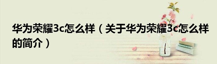 本文關于華為榮耀3c怎么樣的簡介就講解完畢,希望對大家有所幫助。