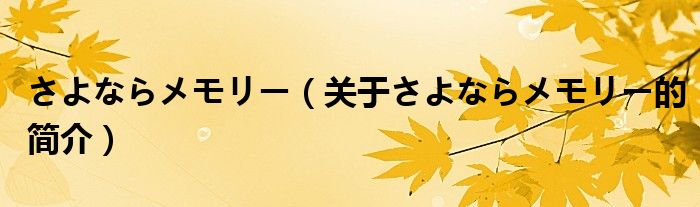 本文關于さよならメモリー的簡介就講解完畢,希望對大家有所幫助。
