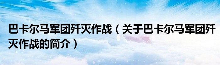 大家好,巴卡爾馬軍團殲滅作戰,關于巴卡爾馬軍團殲滅作戰的簡介很多人還不知道,現在讓我們一起來看看吧!