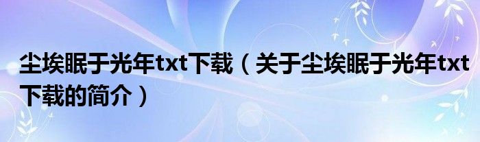 本文關于塵埃眠于光年txt下載的簡介就講解完畢,希望對大家有所幫助。