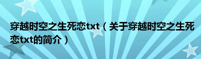 本文關(guān)于穿越時(shí)空之生死戀txt的簡(jiǎn)介就講解完畢,希望對(duì)大家有所幫助。