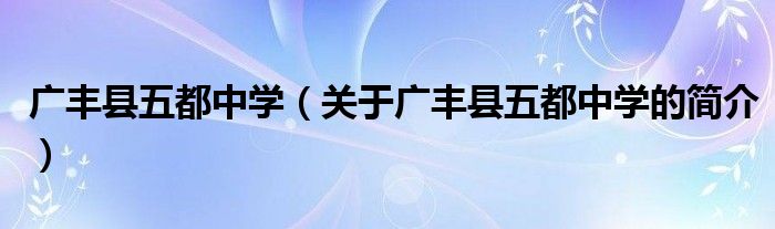 本文關(guān)于廣豐縣五都中學(xué)的簡(jiǎn)介就講解完畢,希望對(duì)大家有所幫助。