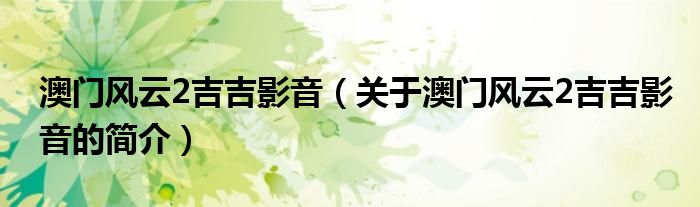 本文關于澳門風云2吉吉影音的簡介就講解完畢,希望對大家有所幫助。