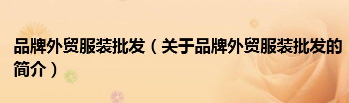 本文關于品牌外貿服裝批發的簡介就講解完畢,希望對大家有所幫助。
