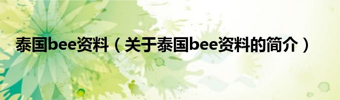 本文關(guān)于泰國(guó)bee資料的簡(jiǎn)介就講解完畢,希望對(duì)大家有所幫助。