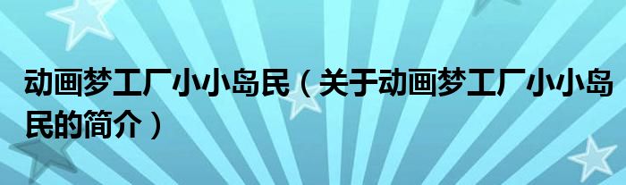 大家好,動畫夢工廠小小島民,關(guān)于動畫夢工廠小小島民的簡介很多人還不知道,現(xiàn)在讓我們一起來看看吧!