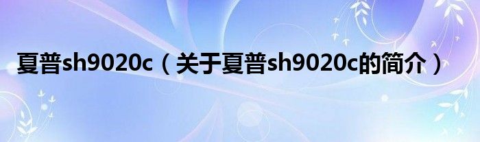 大家好,夏普sh9020c,關(guān)于夏普sh9020c的簡介很多人還不知道,現(xiàn)在讓我們一起來看看吧!