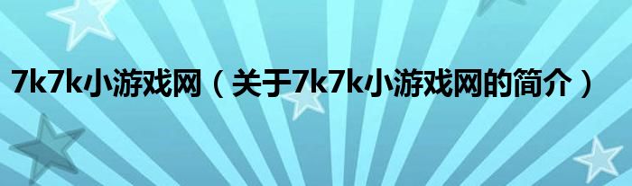 本文關于7k7k小游戲網的簡介就講解完畢,希望對大家有所幫助。