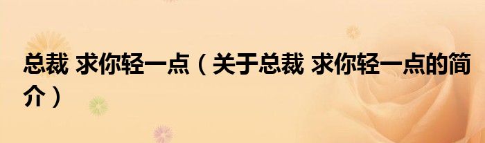 大家好,總裁 求你輕一點,關于總裁 求你輕一點的簡介很多人還不知道,現在讓我們一起來看看吧!