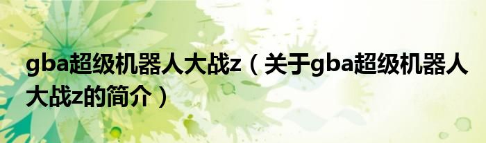 本文關于gba超級機器人大戰z的簡介就講解完畢,希望對大家有所幫助。