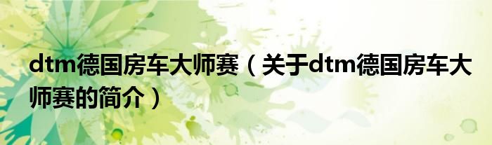 本文關于dtm德國房車大師賽的簡介就講解完畢,希望對大家有所幫助。