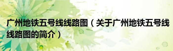 本文關于廣州地鐵五號線線路圖的簡介就講解完畢,希望對大家有所幫助。