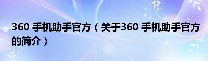 大家好,360 手機(jī)助手官方,關(guān)于360 手機(jī)助手官方的簡(jiǎn)介很多人還不知道,現(xiàn)在讓我們一起來(lái)看看吧!