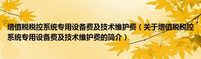 本文關于增值稅稅控系統專用設備費及技術維護費的簡介就講解完畢,希望對大家有所幫助。