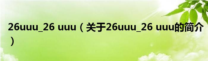 本文關于26uuu_26 uuu的簡介就講解完畢,希望對大家有所幫助。