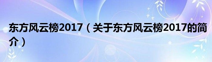 本文關于東方風云榜2017的簡介就講解完畢,希望對大家有所幫助。
