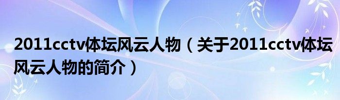 本文關(guān)于2011cctv體壇風(fēng)云人物的簡(jiǎn)介就講解完畢,希望對(duì)大家有所幫助。