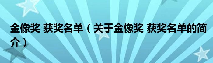本文關于金像獎 獲獎名單的簡介就講解完畢,希望對大家有所幫助。