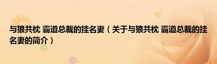 本文關于與狼共枕 霸道總裁的掛名妻的簡介就講解完畢,希望對大家有所幫助。
