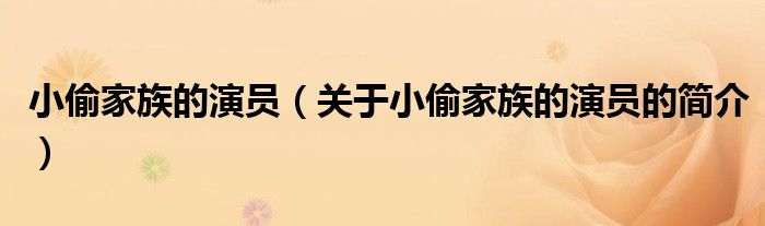 大家好,小偷家族的演員,關于小偷家族的演員的簡介很多人還不知道,現在讓我們一起來看看吧!