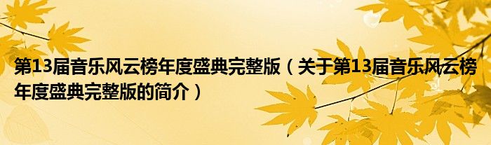 本文關于第13屆音樂風云榜年度盛典完整版的簡介就講解完畢,希望對大家有所幫助。