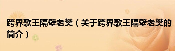 本文關(guān)于跨界歌王隔壁老樊的簡(jiǎn)介就講解完畢,希望對(duì)大家有所幫助。