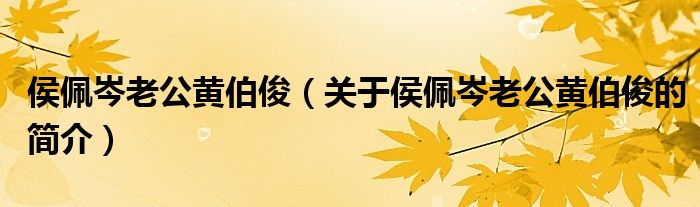 本文關于侯佩岑老公黃伯俊的簡介就講解完畢,希望對大家有所幫助。