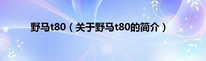 本文關于野馬t80的簡介就講解完畢,希望對大家有所幫助。