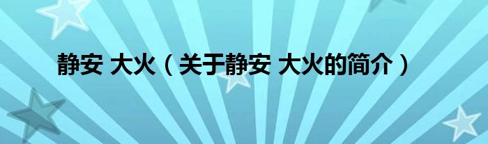 本文關于靜安 大火的簡介就講解完畢,希望對大家有所幫助。